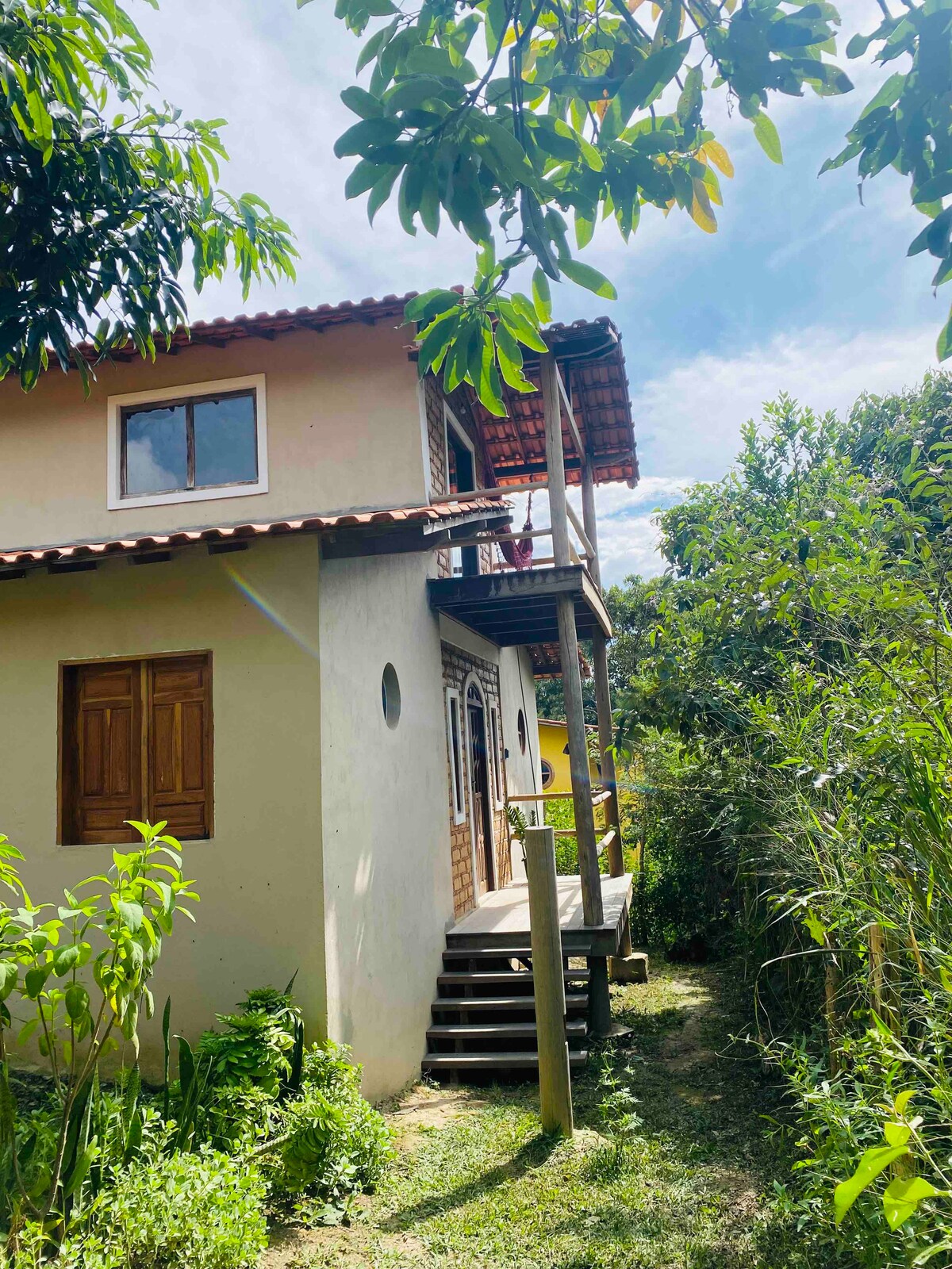 Venha se hospedar numa obra de arte com conforto e luxo no meio da natureza. a casa fica num sitio bem tranquilo e seguro, 1km da praça central. oferecendo um ambiente artístico e saudável com ar livre, agua pura e frutas orgânicas do quintal. o sitio e agro-florestado e oferece um acesso a um lindo balneário natural, rios e cachoeiras. wi-fi livre, Banheira Ofurô Duplo, cozinha completa, aquecedor solar e tratamento ecológico de todos os resíduos. oferecemos aulas de yoga e permacultura .