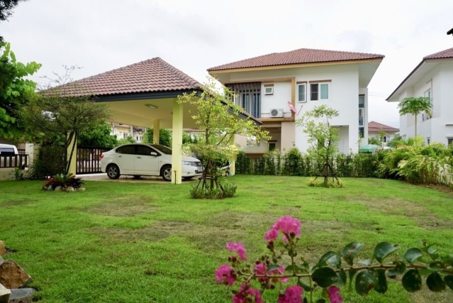 A maior casa de jardim da aldeia, 4 quartos, 4 casas de banho, 273 pés quadrados, adequada para famílias grandes ou 4 a 8 ou mais hóspedes. A casa está decorada com móveis em todos os quartos. Pode organizar festas, festas. Há uma cozinha europeia e uma cozinha tailandesa e uma máquina de lavar roupa, bem como uma máquina de lavar roupa. A casa tem segurança. Há um portão remoto. Estacionamento para 5 carros. Há um segurança 24 horas por dia. Seguro e protegido. Há todos os residentes vizinhos não muito longe da guarita (se quiser alugar um carro, há um custo adicional, pode ser notificado).