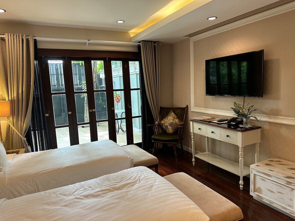 Luxury room for 2 persons with double bed in private garden made you have relax surrounding by nature. Large swimming pool, private party at swimming pool (please request) Service: breakfast 2 person, coffee cafe, swimming pool, security, reception, wifi, working space Location: in Vieng Kum Kam 5 min to 89 plaza market: fresh market, Top supermarket 10 min to Chiangmai Airport 15 min to Central Festival 15 min to Old City *we have motor bike for rent price start from 350 baht*