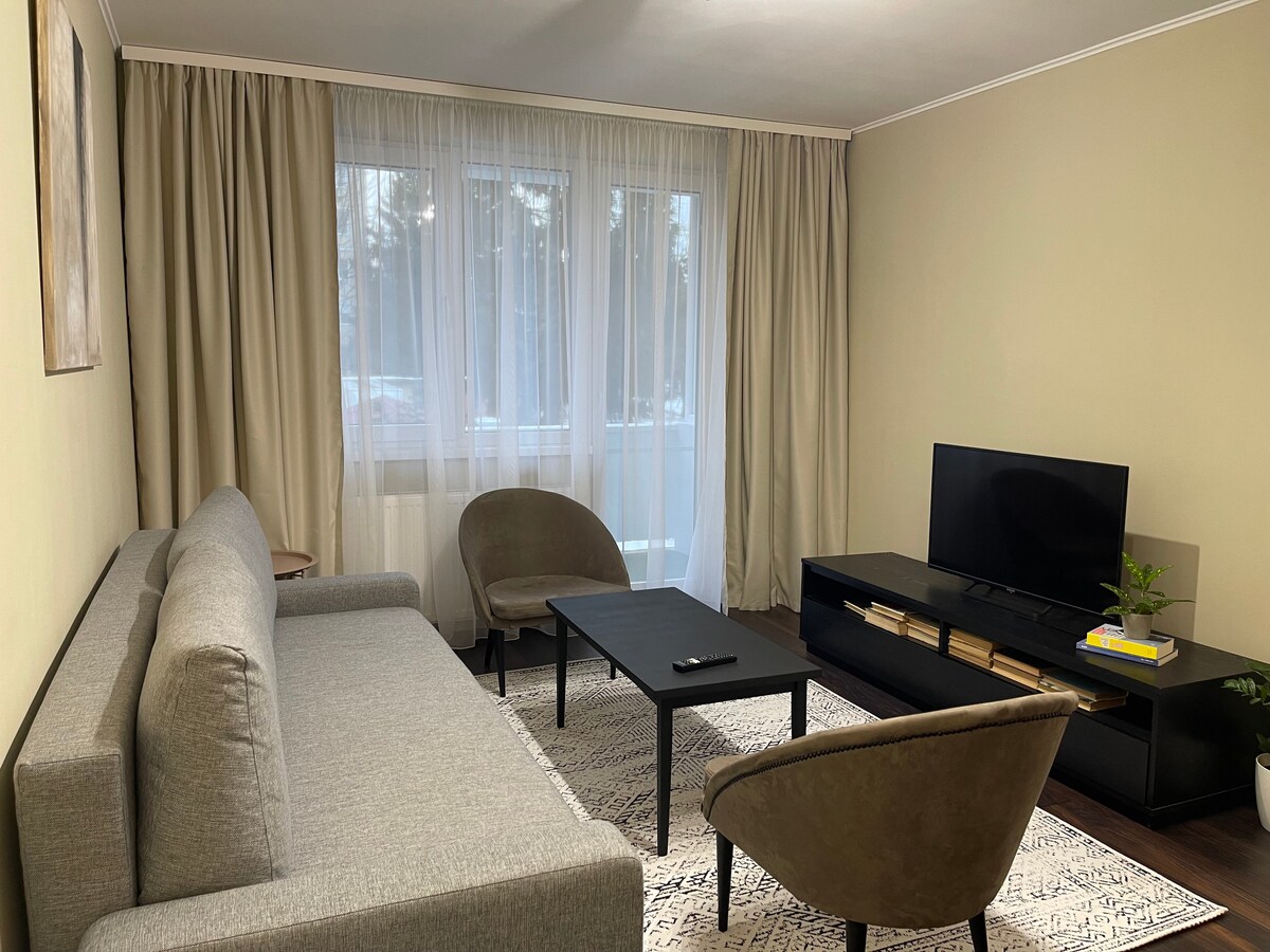 Alugo um apartamento espaçoso com 2 quartos no modo hotel. O apartamento está localizado num novo complexo residencial com uma arquitetura moderna e acabamentos de alta qualidade. O apartamento foi recentemente acabado e mobilado com cozinha equipada com frigorífico de placa de cerâmica, máquina de café , máquina de lavar roupa,micro-ondas, smart TV UHD. Lembre-se de que o apartamento também tem um lugar de estacionamento seguro no pátio do edifício.