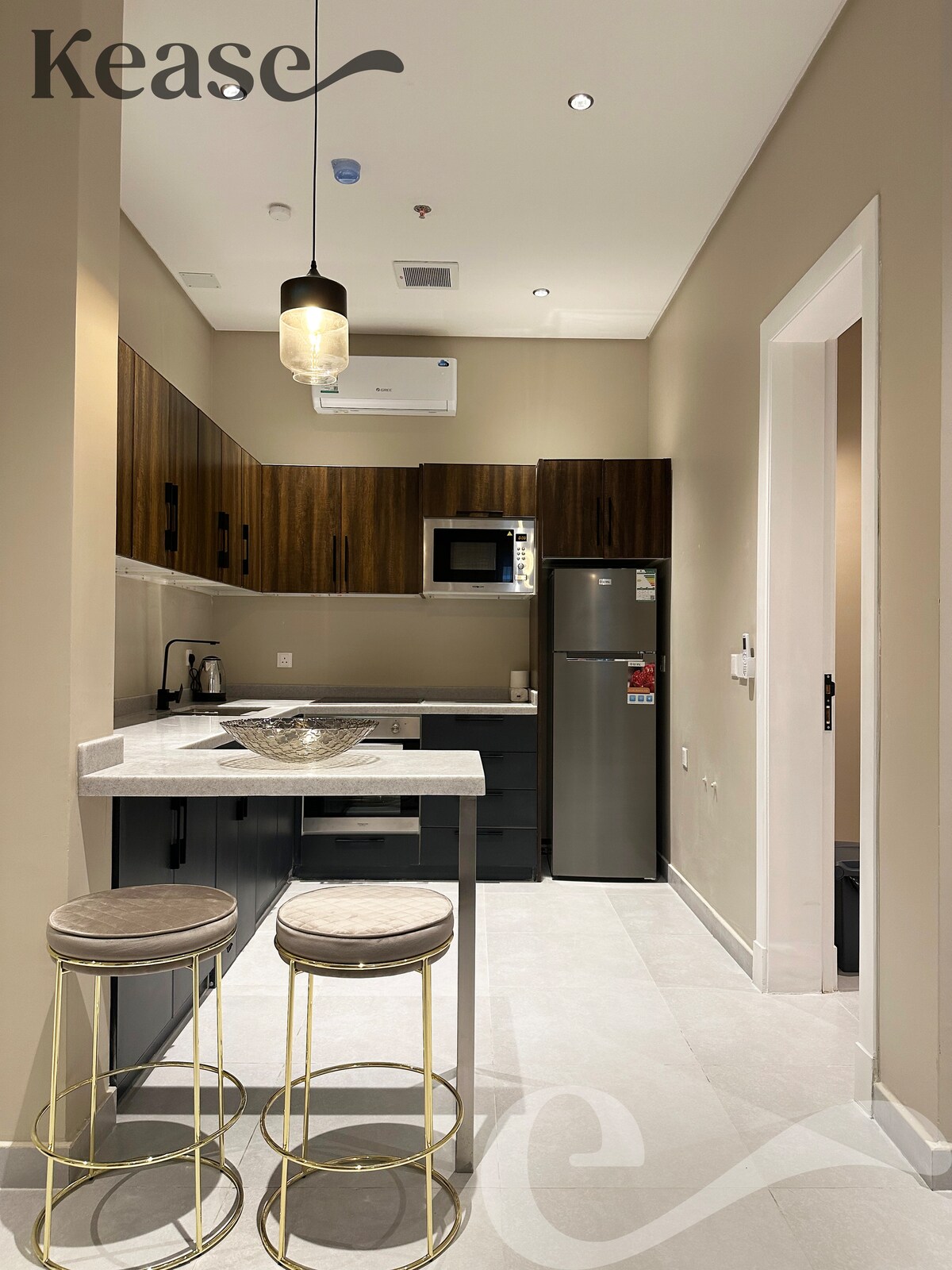 As nossas unidades são tranquilas, confortáveis e completamente privadas e tratámos do seu mobiliário para escolher os melhores e mais belos designs e formatos. Também dispõe de uma cozinha completa equipada com eletrodomésticos completos e utensílios de cozinha e preparação de alimentos. Além de uma máquina de lavar roupa, uma máquina de lavar louça e uma mesa de engomar. As nossas unidades consistem num espaçoso quarto principal (principal) equipado com uma cama confortável. Uma sessão, frigorífico, canto de café e chá, TV de 65 "e iluminação especial para várias opções. Os quartos da unidade também têm lençóis de hotel confortáveis com as melhores especificações.