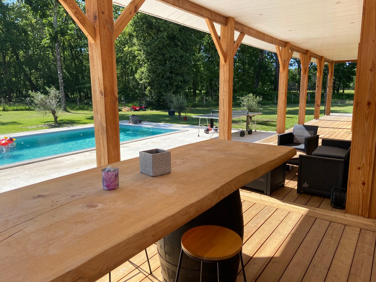A vila "Over the Rainbow" é uma bela casa de madeira de 160 m² com piscina privada aquecida de 9 x 4 m segura (aberta de 1º de maio a 30 de outubro). A casa está localizada em uma área tranquila, mas extremamente bem localizada em relação aos vários pontos turísticos imperdíveis dos arredores (Baía de Arcachon, Cap Ferret, oceano, lago, vinhedos de Médoc). Graças aos muitos equipamentos, ao grande terreno de 1500m² e a um terraço agradável, temos certeza de que você terá uma estadia muito agradável!