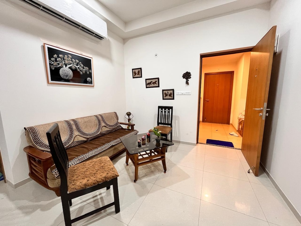 Apartamento de luxo elegante 2 BHK | Piscina • Ginásio • Localização privilegiada | Bem-vindo à sua escapadela moderna! Este elegante apartamento de luxo com 2 quartos e 2 casas de banho é perfeito para famílias, viajantes de negócios ou pequenos grupos que procuram conforto e conveniência. Localizado num ambiente tranquilo e relaxante. O espaço Espaçoso 2 BHK com decoração contemporânea Sala de estar confortável com televisão inteligente e Wi-Fi de alta velocidade Varanda privada com vistas serenas Comodidades Acesso à piscina Ginásio e clube Ar em todos os quartos
