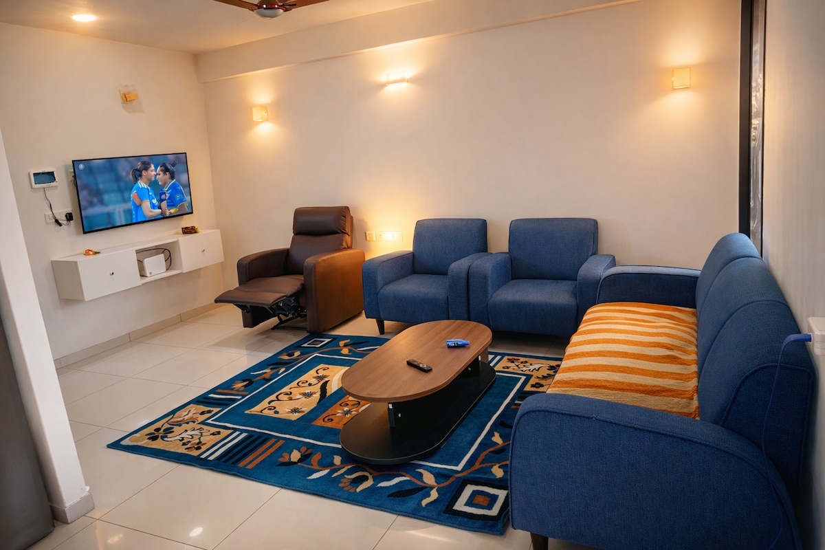 Fique no coração de Ahmedabad em nosso espaçoso apartamento 3BHK, perfeito para famílias, casais ou viajantes de negócios. Principais características: Estadia confortável: acomoda até 8 pessoas com ar condicionado, quartos espaçosos. Entretenimento: TV LED de 55 polegadas e Wi-Fi. Cozinha funcional: equipada com micro-ondas, purificador de água RO e utensílios de cozinha. Comodidades convenientes: máquina de lavar roupa para estadias mais longas. Localização privilegiada: bairro tranquilo perto de lojas, restaurantes e atrações. Reserve agora para uma experiência aconchegante e sem complicações!