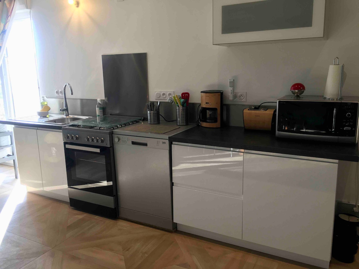 Casa independente num ambiente verde, tranquila no coração da aldeia de Savonnières. Estará a pé das lojas do centro da cidade, mas também muito perto da rota do Loire de bicicleta, a 3 km do Château de Villandry e a 15 km de Tours. Tem todo o equipamento necessário na casa e um espaço exterior para desfrutar da natureza e momentos de convívio.