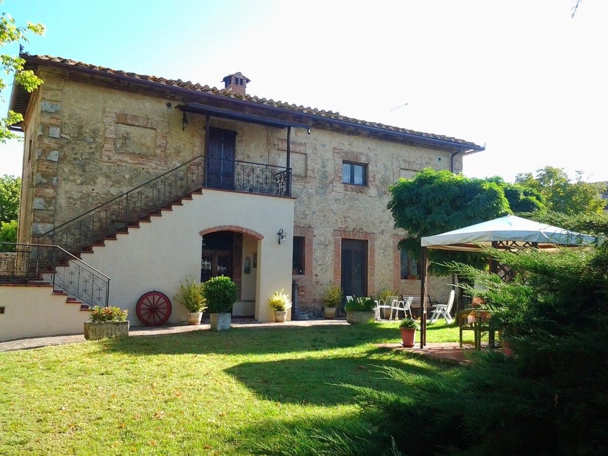 Antigo celeiro restaurado com até 6 quartos e 6 casas de banho, imerso numa propriedade vinícola histórica, a apenas 6 km de Siena. Uma das vistas mais bonitas que o panorama toscano pode oferecer, quartos com ar condicionado, piscina exclusiva, grande jardim triplo, churrasqueira, mesa à beira da piscina, terraço para desfrutar do pôr do sol sobre as torres medievais no horizonte enquanto saboreia os vinhos orgânicos da propriedade, lareira, estacionamento gratuito, Internet Wi-Fi.