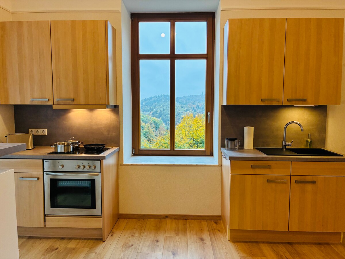 O apartamento de aprox. 41 m ² está localizado no 1 .º andar. A sala de estar está equipada com sofá-cama. No quarto há uma cama de casal de 1,80 x 2,00m e uma televisão. A cozinha com área de jantar está totalmente equipada e inclui um fogão elétrico com forno, frigorífico, lavatório, chaleira, torradeira, etc. O apartamento tem uma casa de banho nova e moderna. O apartamento foi recentemente completamente renovado. As paredes foram acabadas com placas anti molde e limpeza.