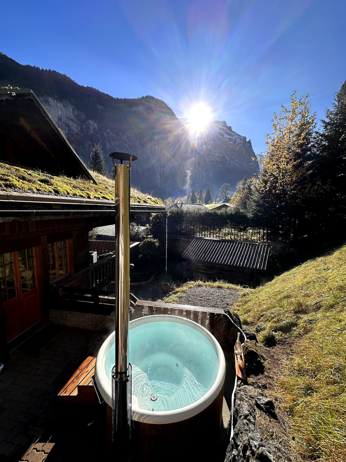 Lindo apartamento com banheira de hidromassagem a lenha privativa localizado dentro do encantador Chalet Staubbach, a base perfeita para suas aventuras de inverno. Esquie, ande de trenó ou caminhe o quanto quiser. No verão, aproveite as trilhas de caminhada e ciclismo de montanha da região. Acorde com o som da cachoeira e desfrute do seu café da manhã enquanto aprecia a beleza da natureza. A varanda e a banheira de hidromassagem também são perfeitas para desfrutar de uma taça de vinho ao pôr do sol ou observar as estrelas à noite. Ônibus de esqui a 50 metros de distância.