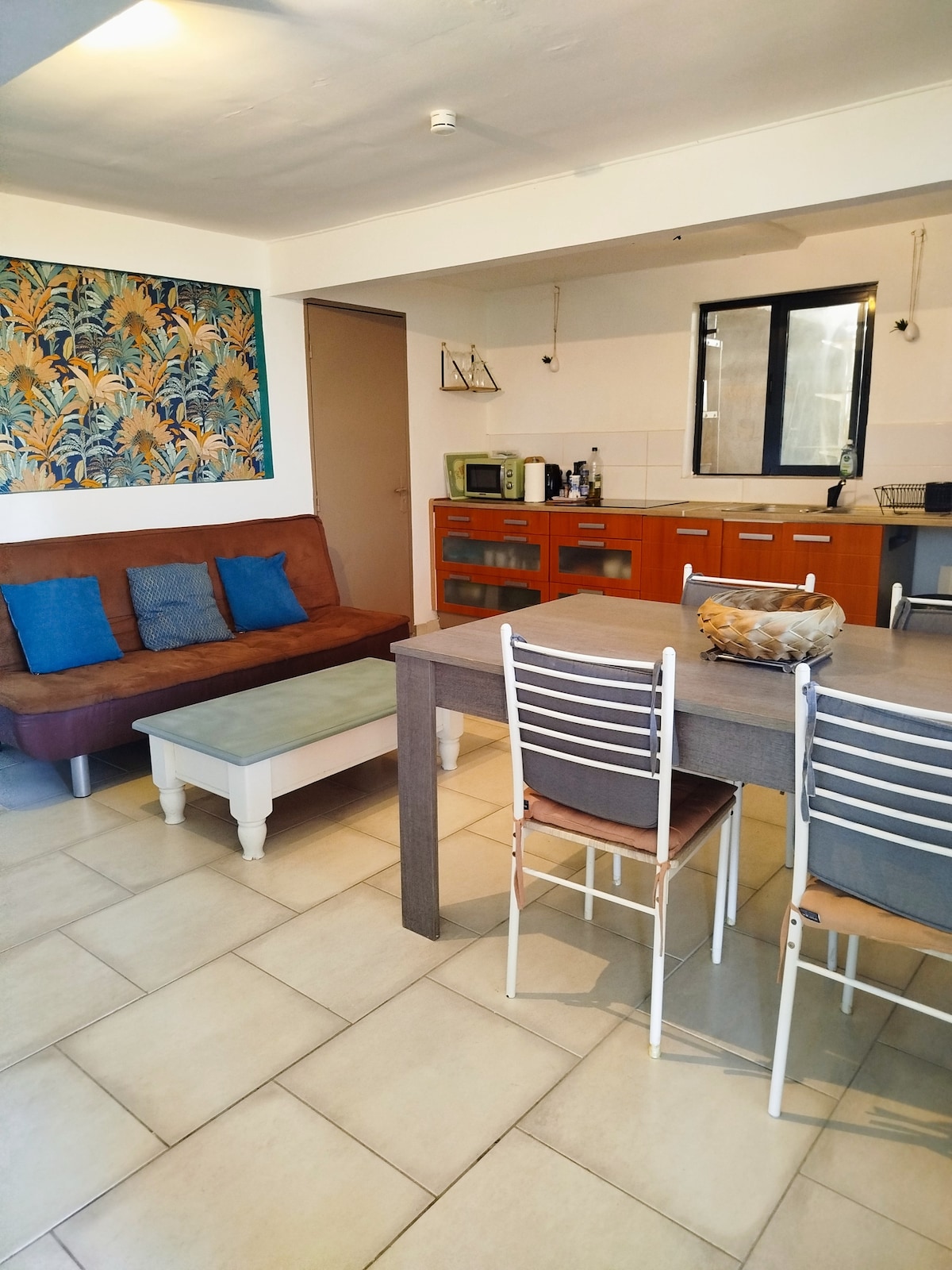 Nossa casa de hóspedes está localizada em uma área tranquila e central, a 2 minutos da praia de carro. cerca de 60m2 para esta acomodação bem ventilada com um terraço ao ar livre para refeições ou descanso na rede, uma cozinha equipada, 1 quarto com ar condicionado, banheiro, banheiro. Perto das praias de Schoelcher, da universidade ou dos principais supermercados... Servido por paradas de ônibus nas proximidades. Sua localização central permite que você se mova facilmente por toda a ilha.