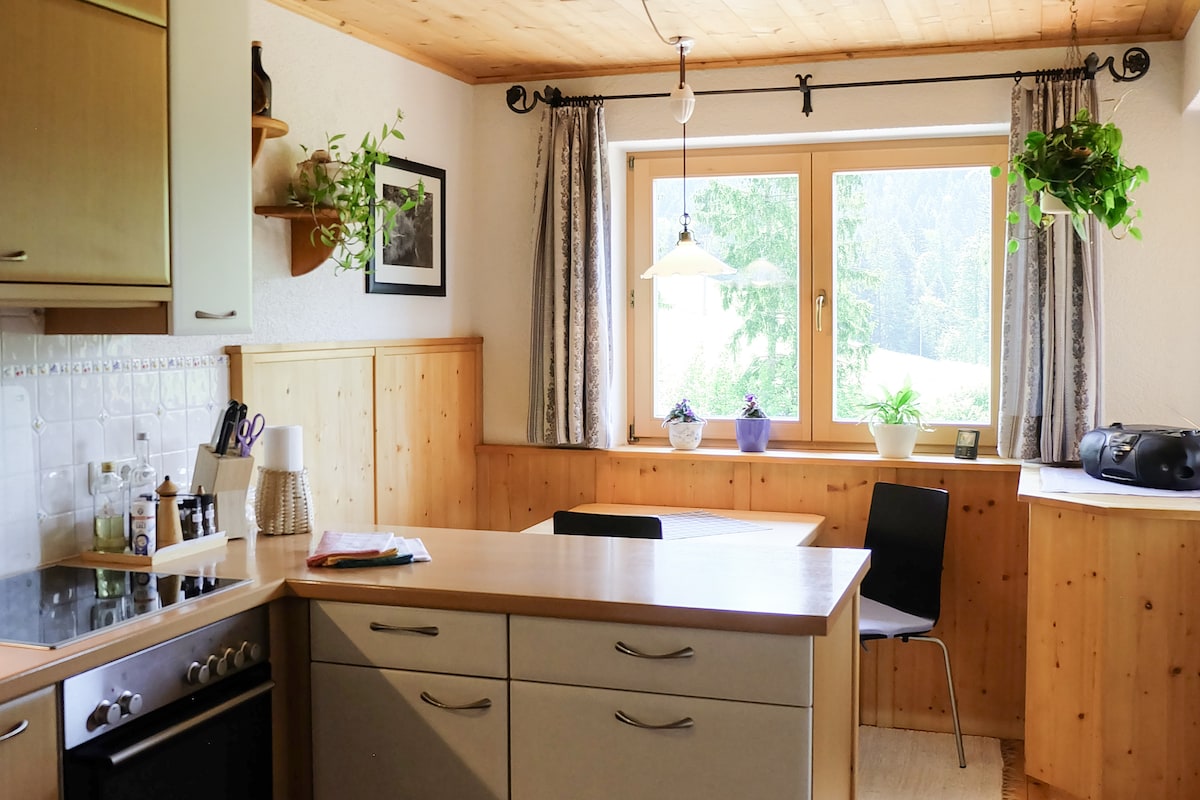 Conosco, você vive em meio à natureza verde, cercado por bosques e prados. No apartamento de madeira de abeto tirolesa com lareira você se sente logo em casa. O apartamento de 60m² recebe você com uma grande sala de estar que inclui Cozinha e lareira, quarto, banheiro. A lareira no apartamento proporciona um calor aconchegante, aqui você pode desfrutar de momentos românticos em frente ao fogo crepitante.