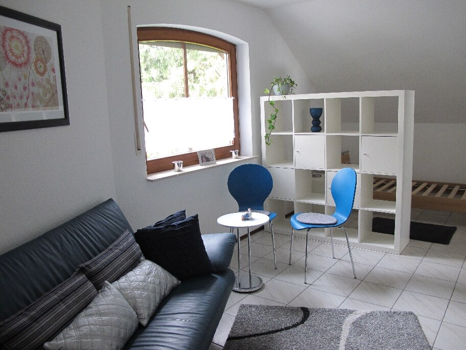 Sente-se e relaxe - neste apartamento tranquilo, elegante e decorado com muito carinho, com cerca de 55 metros quadrados. O apartamento está localizado em uma área rural e fica próximo a trilhas, florestas, pistas de esqui e de esqui cross-country. O apartamento está localizado no último andar de uma casa de dois apartamentos. Foi recentemente reformado, o banheiro convida ao relaxamento com o grande chuveiro de efeito chuva. A cozinha totalmente equipada oferece todas as comodidades para que você possa preparar suas refeições.