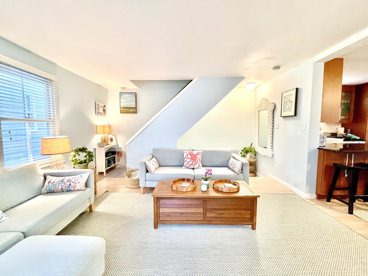 Moderno, leve e arejado... Beach Block no centro de Sea Isle City. Nova cozinha com tudo o que você precisa. Dois sofás confortáveis, mesa que acomoda seis pessoas e Wi-Fi rápido. Dois banheiros completos facilitam a hospedagem. Varanda da frente tem vista parcial para o mar; Wawa, mini-golfe, sorvete, restaurantes e bares estão a uma curta distância a pé.