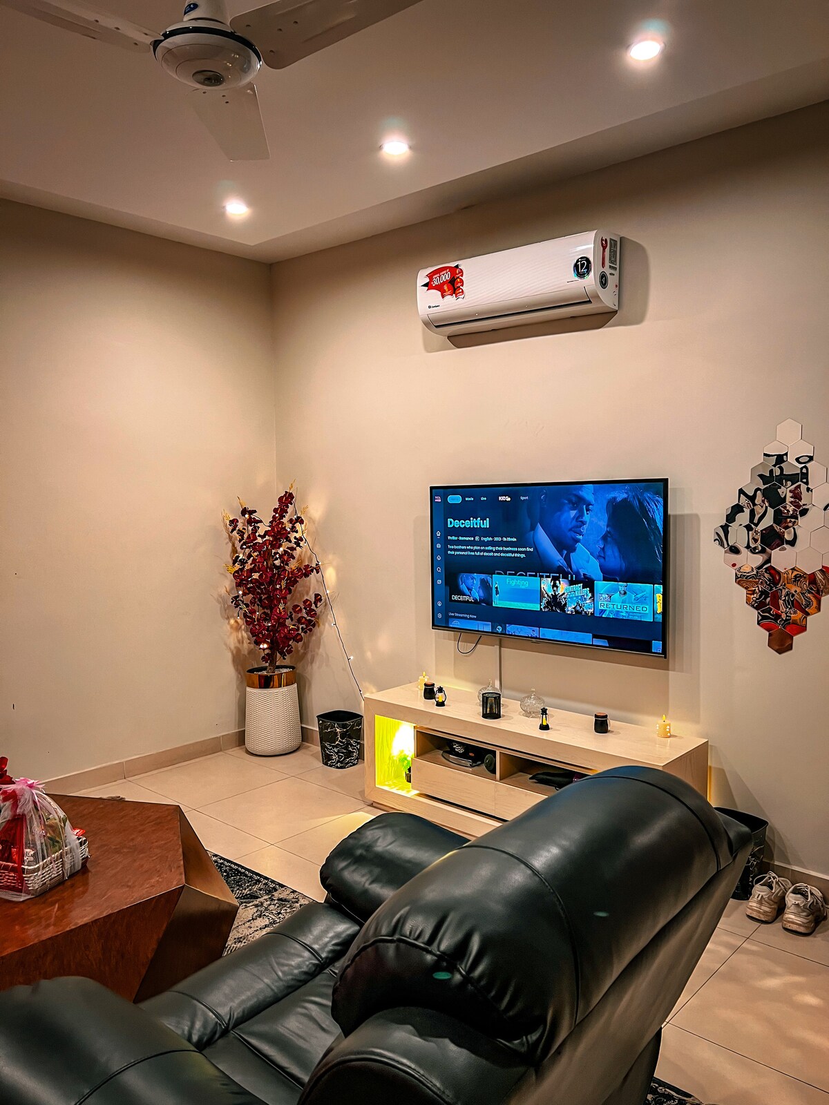 Bem-vindo ao Seven Residence, "a sua segunda casa" Desfrute de uma estadia luxuosa e moderna neste elegante apartamento de 1 quarto localizado em Bahria Fase 7. Ideal para famílias e profissionais, o apartamento tem uma área de estar confortável com televisão inteligente de 55 polegadas, um quarto acolhedor com roupa de cama limpa, uma casa de banho moderna e limpa, uma cozinha totalmente equipada, Wi-Fi de alta velocidade e check-in autónomo. Apenas a 5 minutos da GT Road e a 3 minutos da Bahria Food Street, com restaurantes e mercearias a uma curta distância a pé.