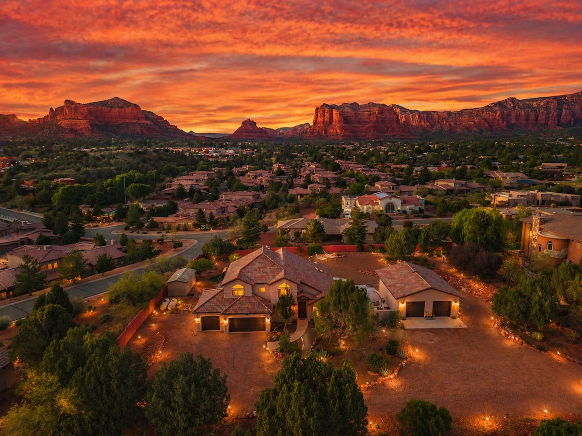 Sunrise House located in the scenic Chapel district of Sedona. Walking distance to the world-famous Frank Lloyd Wright inspired chapel. This spacious 3 bedroom/2 bath home can comfortably sleep up to 8 people. The light filled “Arizona Room” functions as fourth bedroom. Lovingly furnished, this gorgeous house also features an upgraded kitchen with all new appliances and quartz countertops. Expansive fenced yard with new Hot Tub and fire pit.