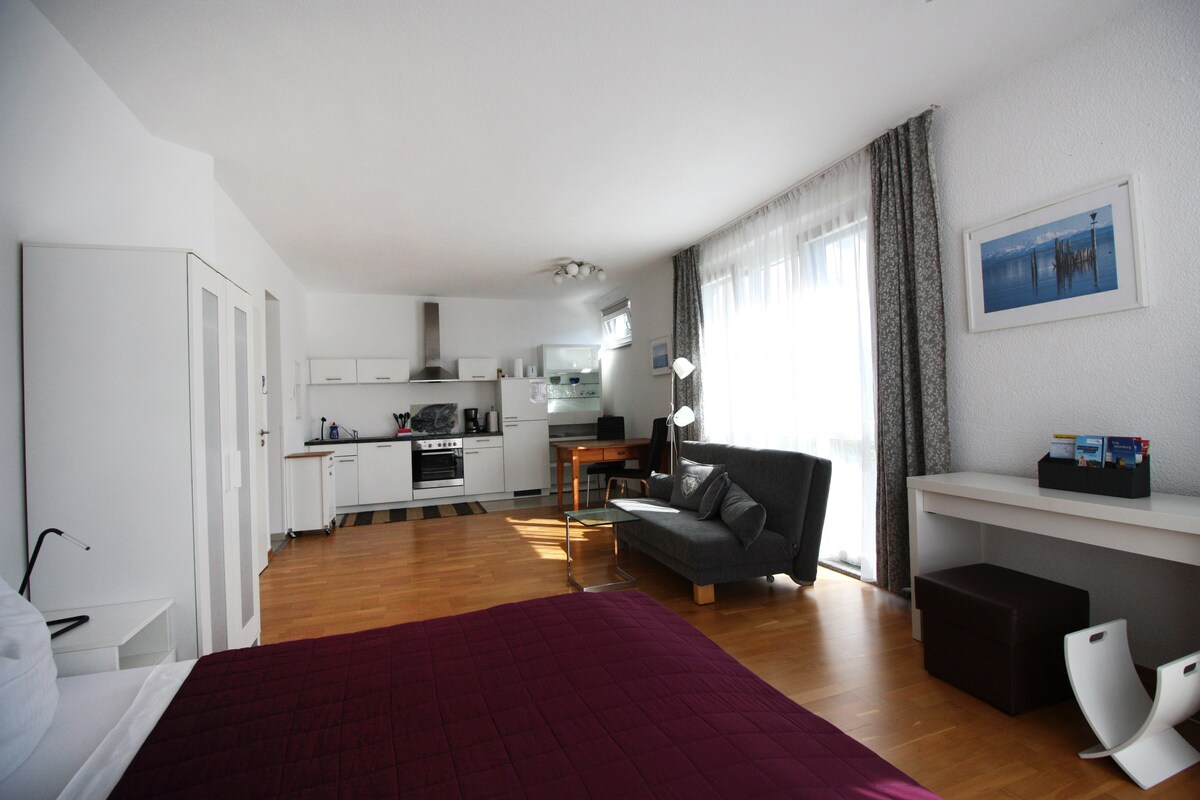 Unsere gemütliche Wohnung ist ideal für 1 - 3 Gäste, die sich eine erholsame Auszeit ausserhalb der hektischen Stadt wünschen. Ein prima Ausgangspunkt für Ausflüge mit dem Rad oder zu Fuss in die wunderschöne Umgebung und zu interessanten Zielen. Zum See sind es nur ein paar Minuten den Berg hinunter. Hier könnt Ihr mit der Fähre nach Meersburg übersetzen - und auch die Insel Mainau ist nicht weit. In die Altstadt führt ein schöner langer Uferweg oder der kostenlose, direkte Bus (ca. 20 min.).