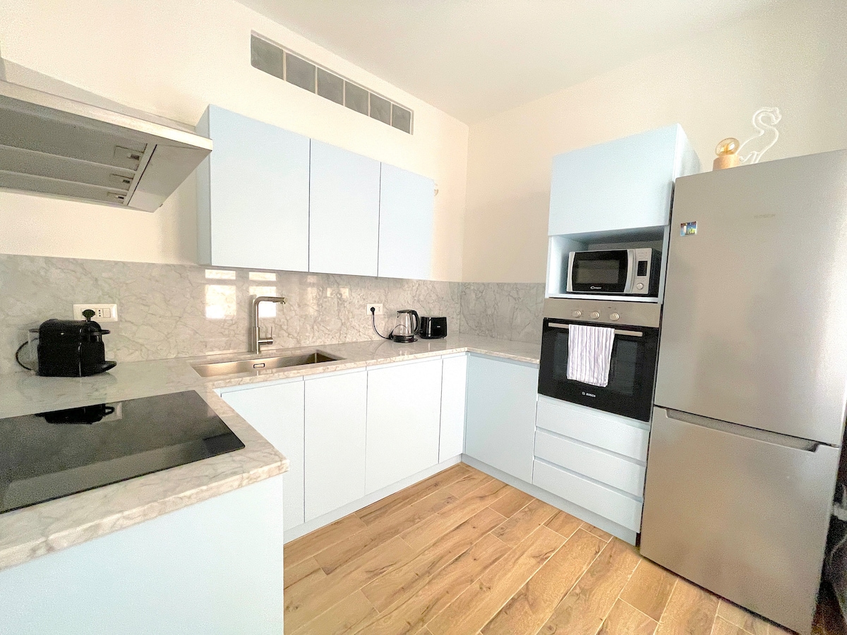 O apartamento está localizado no segundo e último andar, sem elevador, com um amplo terraço que lhe permitirá relaxar neste oásis de tranquilidade e elegância. É composto por uma entrada com cozinha americana com geladeira e freezer, forno, micro-ondas, máquina de lavar louça, fogão elétrico, cafeteira, equipamentos básicos, TV e sofá-cama; quarto de casal; banheiro. Há aquecimento/ar condicionado em ambos os quartos. Ideal para dois adultos e uma criança em berço.