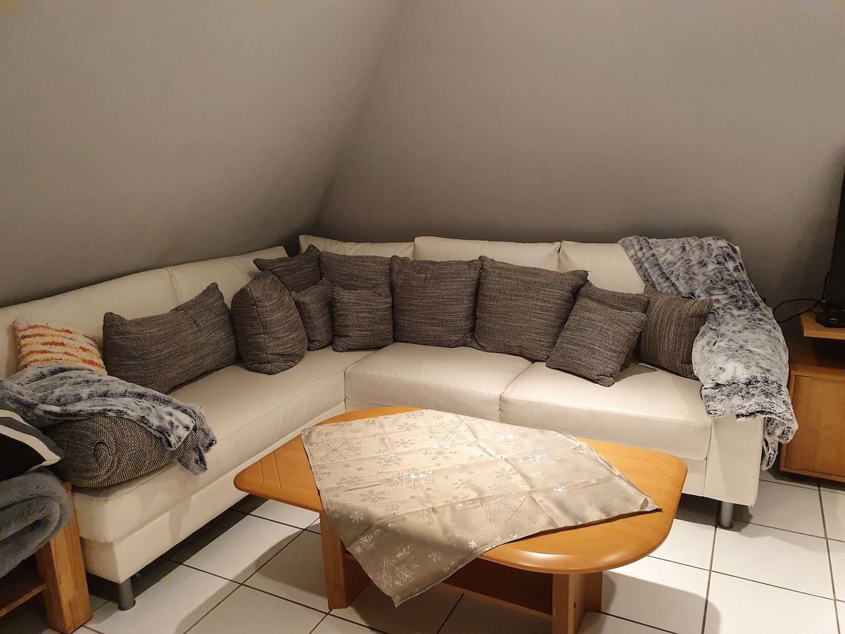 O nosso apartamento moderno e mobilado com carinho tem 95 m². Tem uma entrada separada no rés-do-chão e é acessível. Atrás da casa há um grande jardim com assentos e churrasqueira. Um lugar de estacionamento gratuito está disponível diretamente na casa.