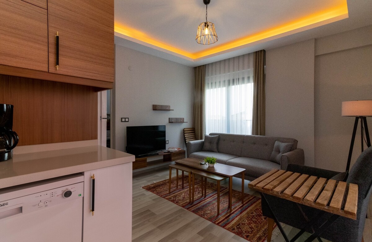 Apartamento 1+1 com cozinha perto de Güvercin ada e do centro