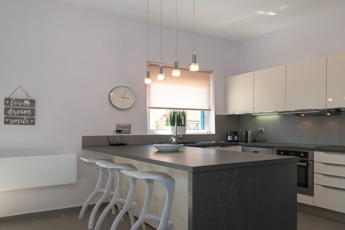 Acorde com o mar Comece o dia com um café no terraço, com vista para o azul infinito do Mediterrâneo. Este apartamento luminoso e espaçoso (105 m²) oferece um ambiente calmo e confortável para casais, amigos ou famílias que queiram desacelerar e desfrutar da beleza de Mani. Quer passe os dias na praia, a explorar as aldeias próximas ou simplesmente a relaxar em casa, este é um espaço para desligar verdadeiramente.