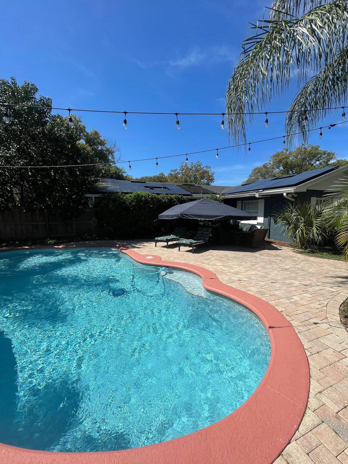 Partilhe o quintal tranquilo e a piscina com os seus anfitriões. Metade estava entre a Disney e as praias. Apenas para maiores de 12 anos. O sofá estende-se a uma cama de solteiro. A poucos minutos da Interestadual-4. NÃO É uma piscina aquecida. As cadeiras de rodas são boas. Portão de entrada da garagem 39"- Passagem para a entrada da rampa 32"- Entrada deslizante 33"- Porta do quarto 35"- Chuveiro (sem degrau) 35"- Lavandaria 32"- Roupeiro 35"- Cama queen 29"- Armários padrão. Não temos certificação para deficientes, mas a maioria dos hóspedes em cadeira de rodas não teve problemas. As barras de apoio estão na casa de banho.
