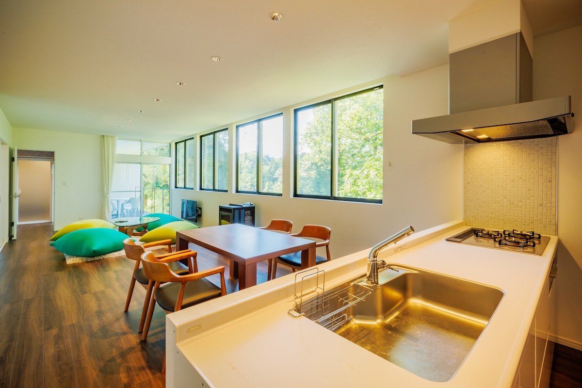 O Four Seasons Oasis Miyagi Zao recebe nómadas digitais.Toda a moradia alugada está equipada com acesso Wi-Fi gratuito.É fornecido um ambiente de trabalho remoto confortável para si. Four Seasons Oasis Miyagi Zao (FSO), uma luxuosa casa de hóspedes moderna japonesa com fontes termais naturais aninhada na floresta de Zao Paredes pretas modernas luxuosas e brilhantes vitrais bonitos e fantásticos.É um refúgio para adultos que podem ser relaxados enquanto estão cercados por uma sensação extraordinária, e você pode sentir um relaxamento de alta qualidade.Por favor, passe o melhor tempo num quarto com uma sensação de abertura enquanto é atraído por uma elegante iluminação indireta. Você pode desfrutar das fontes termais naturais que ainda estão pulsando do Monte. Zao, num luxuoso banho espaçoso feito de granito preto. Sobre a sua ◎estadia Os FSOs estão limitados a um grupo por dia, até 8 pessoas, e podem acomodar toda a casa.A taxa de acomodação é a mesma para até 4 pessoas, e há um custo adicional para cada pessoa adicional de 5 pessoas. * As refeições não estão incluídas no preço do alojamento. * Não há taxa para crianças.Serão cobradas crianças com 2 anos ou mais.