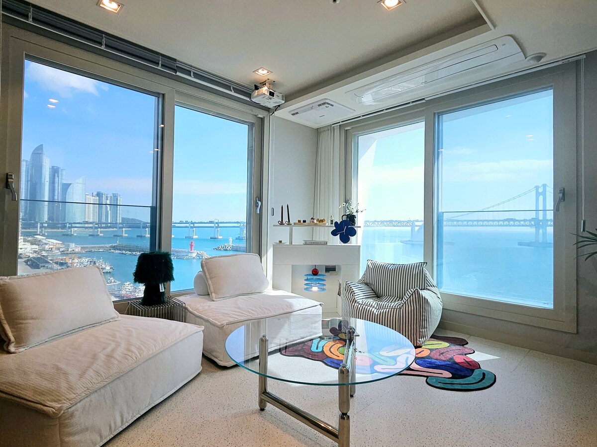 Privé97#Alojamento em Gwangalli#Vista Mar Panorâmica#Vista Marinha da Cidade#Check-in Antecipado#Estacionamento Gratuito#Sala de Estar+2 Quartos#20 m²
