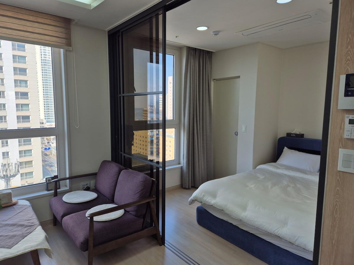 1. Vista ampla para o mar a partir da varanda do 17º andar - O nascer do sol(manhã), luz do feixe da casa (noite) 2. Quarto limpo e moderno - Acabou de ser construído em 2022, eletrodoméstico totalmente equipado. Lavandaria e máquina de secar, etc. 3. Boa localização para viagens e descanso - Perto da paragem de autocarro para MT Seorak - A uma curta distância da praia, Museu X, Restaurante e Bar, Café, Portos locais, Mercado Central de Sokcho, etc. 4. Estacionamento gratuito dentro do edifício