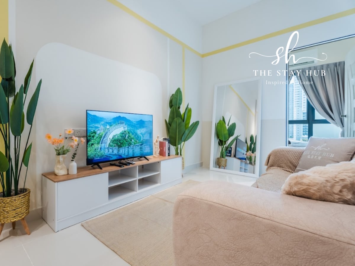 Explore nosso estúdio aconchegante, que pode acomodar de 2 a 3 pessoas com uma cama queen size e um sofá-cama. A apenas 15 minutos de carro do KLIA T1/T2, o lugar está cercado por muitos restaurantes, filiais de fast food, mantimentos e lavanderias, tudo a uma curta distância a pé. Saboreie todas as comodidades, incluindo o parque infantil, área de churrasco, academia e piscina, com segurança 24 horas por dia, 7 dias por semana. * Indisponível para deixar sua bagagem antes do horário de check-in. Devido ao design do edifício, é necessário subir 10 degraus de escada para pegar o elevador.