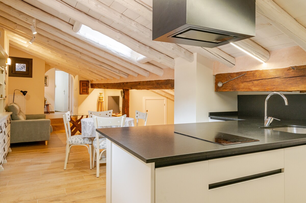Nossa cobertura ou Catedral, é a joia da coroa. Duplex de 117 m2 e tetos com vigas expostas. Com uma grande sala de estar, sala de jantar e cozinha totalmente equipada. No primeiro andar, quarto no sótão com vista para a Hoz e um banheiro completo. Tem uma cama de casal e uma cama extra de 90 cm. No andar superior, encontramos dois quartos com cama de casal e vistas incríveis. Há um grande banheiro completo com janela.