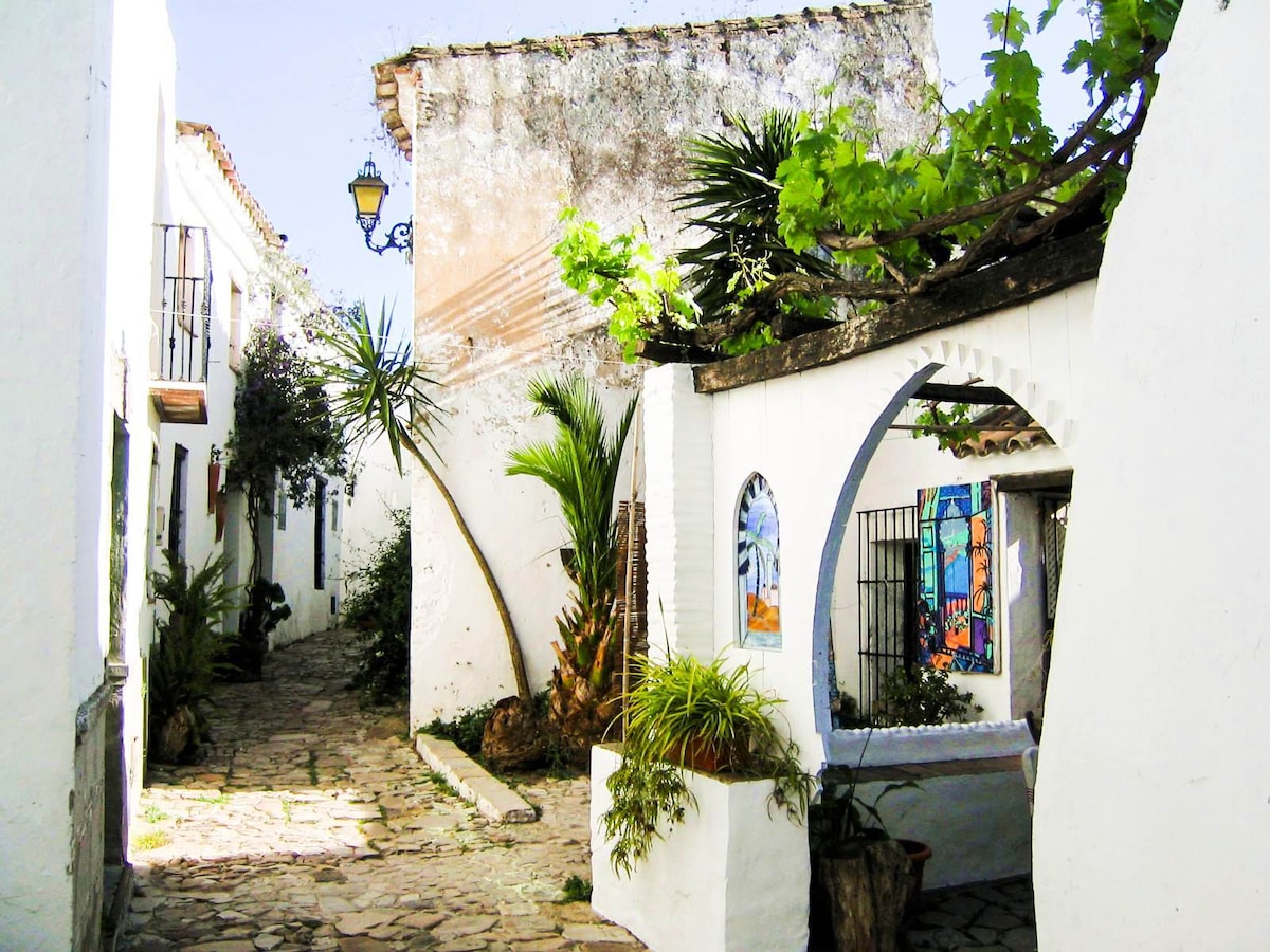 The small fortified village of Castellar de la Frontera is located in southern Andalusia. Considered one of the most beautiful villages in Spain, it is within a castle surrounded by the walls of a well preserved Moorish-Christian fortress built around the 13th century. The white-washed buildings within the walls have been renovated, in full respect of the original architecture, colours and materials, and some holiday apartments, all with their own independent entrance, have been acquired.