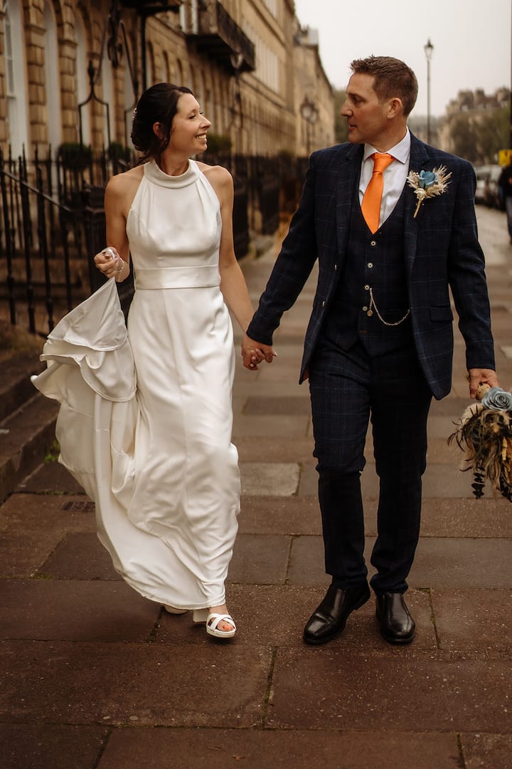 Sessão de fotos de casal na cidade, com alguns dos grandes marcos e contando sua história de seu tempo em Bath