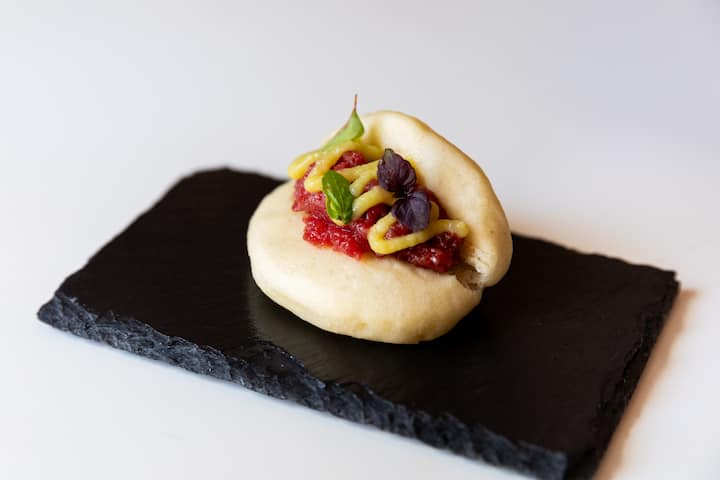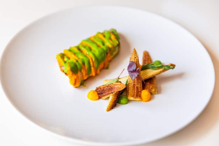Um percurso de degustação gourmet de 5 pratos à base de carne e legumes da estação