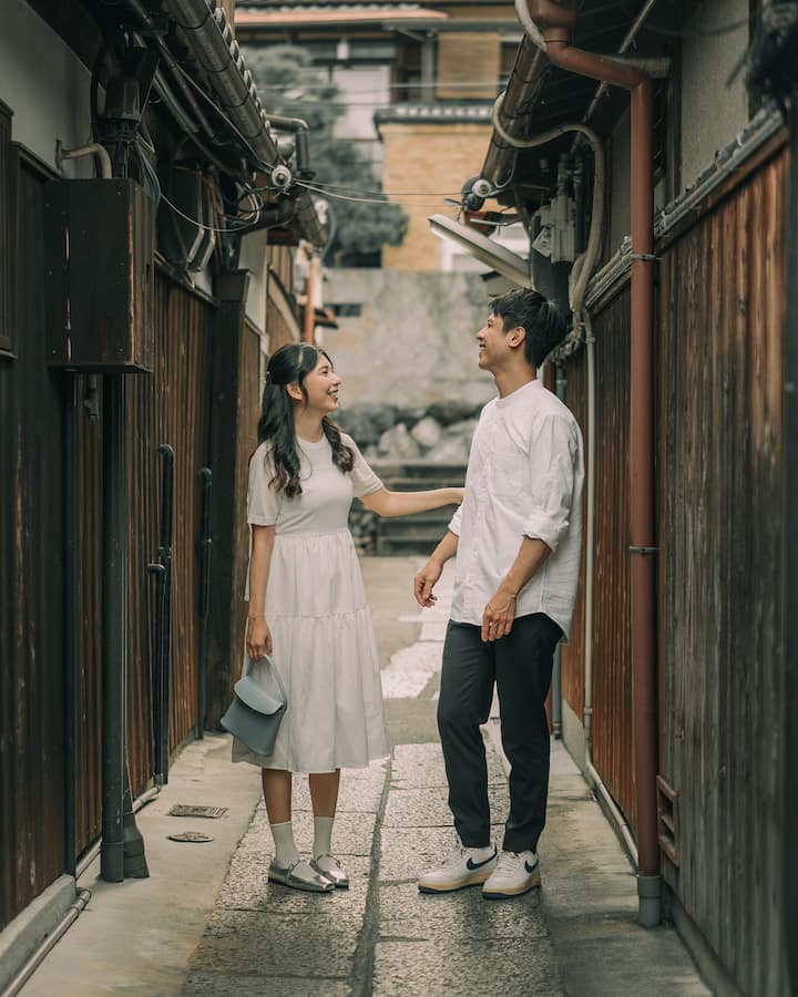 Perfeito para casais que celebram uma lua de mel, aniversário ou viagem especial. Receberá 40 a 60 fotos editadas profissionalmente que capturam a sua ligação e o charme de Quioto.