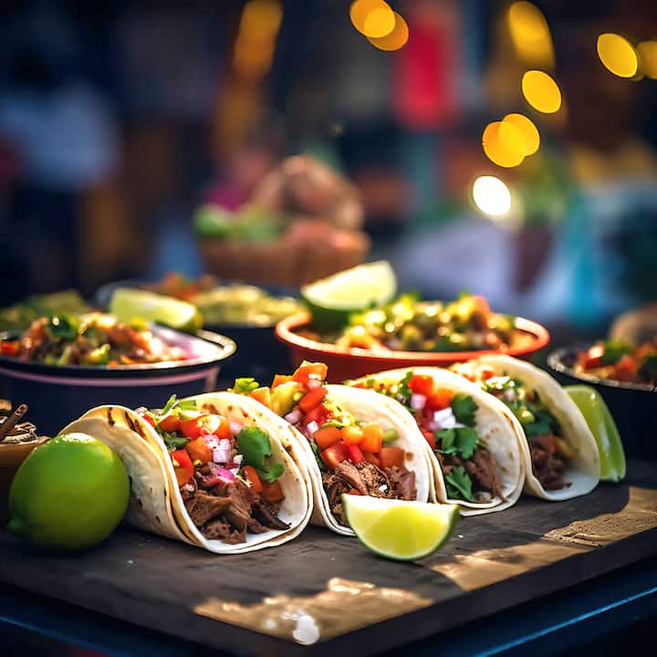 Segurem os vossos sombreros, é hora de festa! Neste divertido bar de festa ao estilo Mexi-Cali, onde pode «criar os seus próprios tacos», desfrutará de uma grande variedade de recheios e acompanhamentos autênticos e deliciosos para tacos, onde todos podem personalizar a sua refeição perfeita. Promete ser um momento festivo de boa comida, música e companhia. As opções incluem uma variedade saborosa de carnes grelhadas na brasa, legumes grelhados variados, acompanhamentos caseiros autênticos e coberturas frescas para tacos. Viva Mexi-Cali!