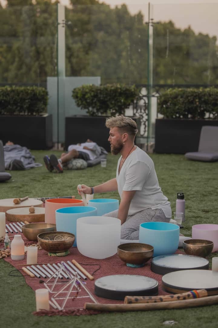 Este banho de som nutritivo oferece descanso para o corpo, a mente e o sistema nervoso. A meditação guiada, a respiração consciente e a aromaterapia preparam-no para receber os sons em camadas de tigelas de cristal, tigelas tibetanas, tambores, tambores oceânicos, gongos, paus de chuva, sinos e muito mais. Tapetes, cobertores e almofadas confortáveis são fornecidos para relaxamento e libertação completos.
