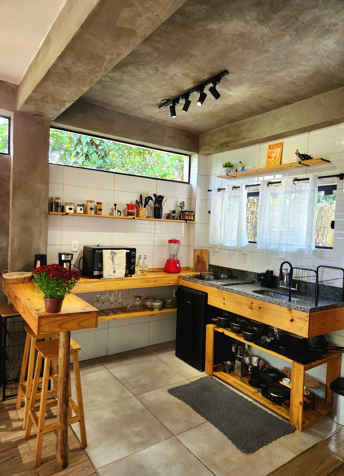 Olá, bem-vindo(a)! A Tiny House possui um design diferenciado que se integra totalmente a natureza. Uma casa particular, independente e totalmente privativa. Ficar do lado de fora ou dentro é quase que igualmente prazeroso. A atmosfera de aconchego do interior da casa, muito pela predominância das amplas portas e paredes de vidro, traz iluminação presente e o aroma de natureza que adentra o espaço, passam a sensação gostosa de bem-estar e conexão com a natureza. Venha viver essa experiência!