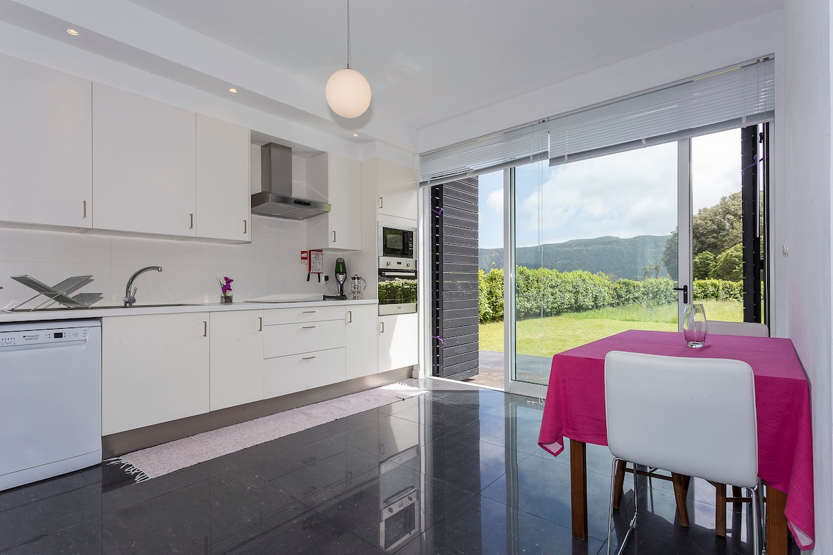 A casa está decorada de uma forma simples, elegante e acolhedora para o fazer sentir-se em casa. Está equipada com, praticamente, tudo o que é necessário. A casa está localizada na orla da Lagoa Azul, dentro de uma enorme cratera cercada por um vulcão incrível.