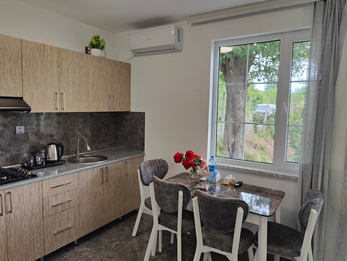 Desfrute de uma estadia tranquila na nossa acolhedora casa de campo localizada na zona panorâmica de Shamakhi. Rodeada pela natureza e pelo ar puro da montanha, esta casa é perfeita para hóspedes que pretendem relaxar e fugir do barulho da cidade. A casa tem dois quartos confortáveis, uma espaçosa sala de estar, uma cozinha e uma casa de banho. É ideal para famílias, casais ou pequenos grupos que queiram desfrutar de uma experiência rural tranquila e autêntica. A nossa casa oferece conforto, privacidade e um ambiente acolhedor.