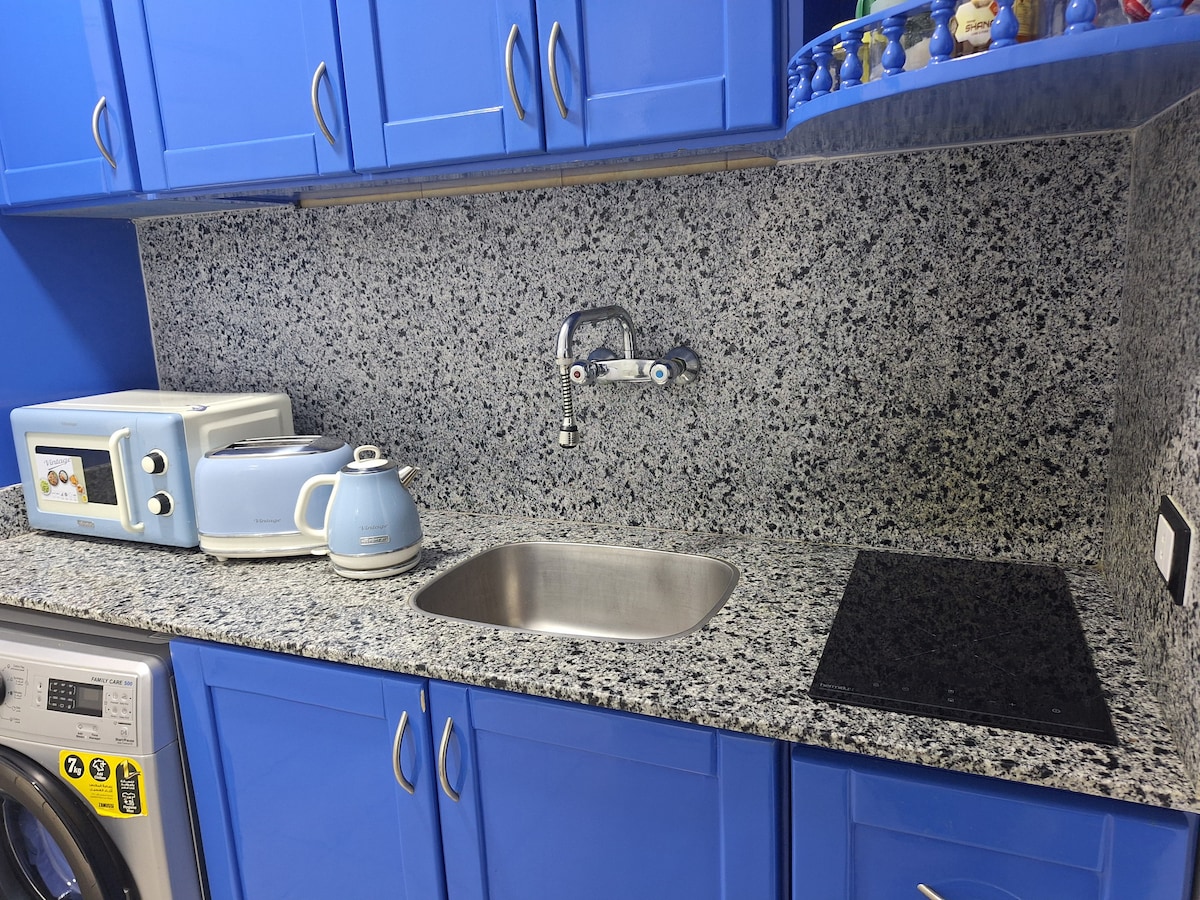Apartamento muito tranquilo e confortável, totalmente mobilado ,na Main Street e tão perto da reserva natural de Nabq O apartamento tem 1 quarto, casa de banho de bom tamanho, área de cozinha de luxo agradável com tudo para cozinhar. Boa área de estar acolhedora com sofá confortável, smart tv e WI-FI. Incrível varanda grande mobilada em estilo beduien. Máquina de lavar roupa Ar condicionado Ferro de engomar 4 piscinas Segurança Também pode fornecer um transporte de e para o aeroporto