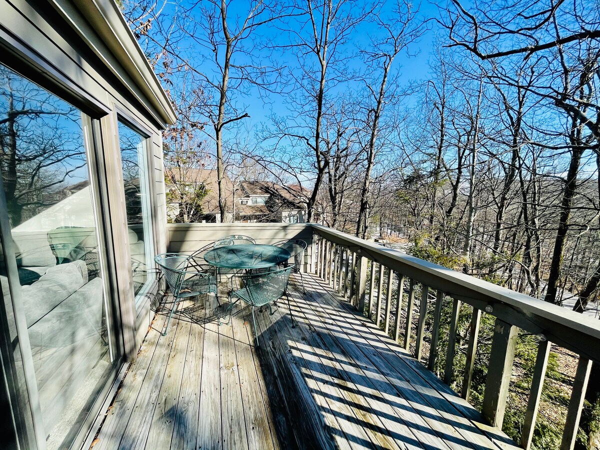 **Animais de estimação permitidos** apartamento de dois quartos, duas casas de banho, estilo loft localizado no centro do Wintergreen Resort. O check-in/teleféricos de esqui, os restaurantes, o mercado de mantimentos no topo da montanha e o Mountain Inn e o centro de conferências ficam a cerca de 5 minutos a pé! Esta é uma unidade de dois andares com quarto em estilo loft e casa de banho privativa, e quarto no primeiro andar com casa de banho no corredor. Estacionamento, acesso à piscina, máquina de lavar/secar roupa e Wi-Fi incluídos. Cozinha totalmente abastecida, lareira a lenha, varanda, todas as toalhas/roupa de cama fornecidas. Dorme 5.