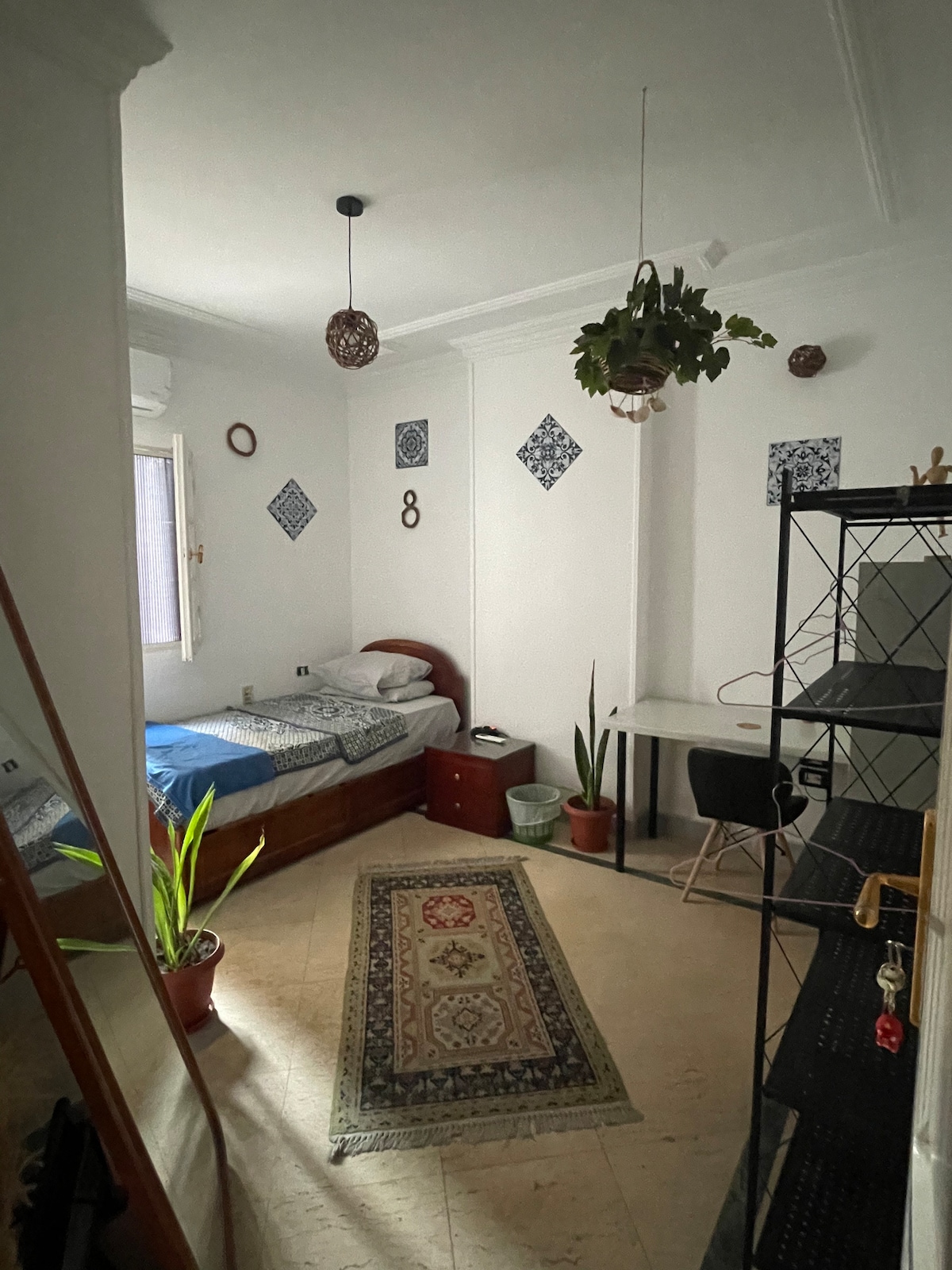 Relaxe neste lugar único e tranquilo. E desfrute de uma casa que parece um lar, onde você pode encontrar um lugar para relaxar e se sentir acolhido, e você também pode trabalhar e terminar seus negócios em um espaço de trabalho tranquilo e atraente, e se você tem uma rotina diária de malhação, então este é o lugar para você. Estamos localizados muito perto do aeroporto do Cairo O que você encontrará: - 2 Quartos - 2 banheiros - Cozinha - Sala de estar - Área de jantar - Espaço de escritório - Espaço de treino - Varanda com uma mesa ao ar livre