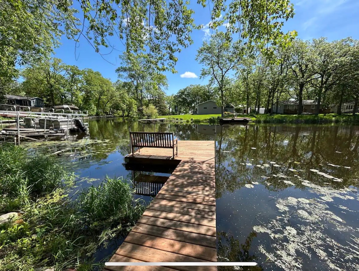 Você estará situado em uma colina com vistas deslumbrantes para o lago de quase todas as janelas - esta casa cheia de luz oferece o melhor refúgio. Desfrute de pranchas de SUP, caiaques, tapete de natação e boias — tudo fornecido! Para você entusiastas da pesca, o cais é um local perfeito para pescar. Relaxe e mergulhe no ambiente sereno!" Estamos localizados a 50 minutos das Cidades Gêmeas, por isso não vai demorar muito para que você esteja relaxando e desfrutando do belo pôr do sol do seu convés e saboreando sua bebida favorita!