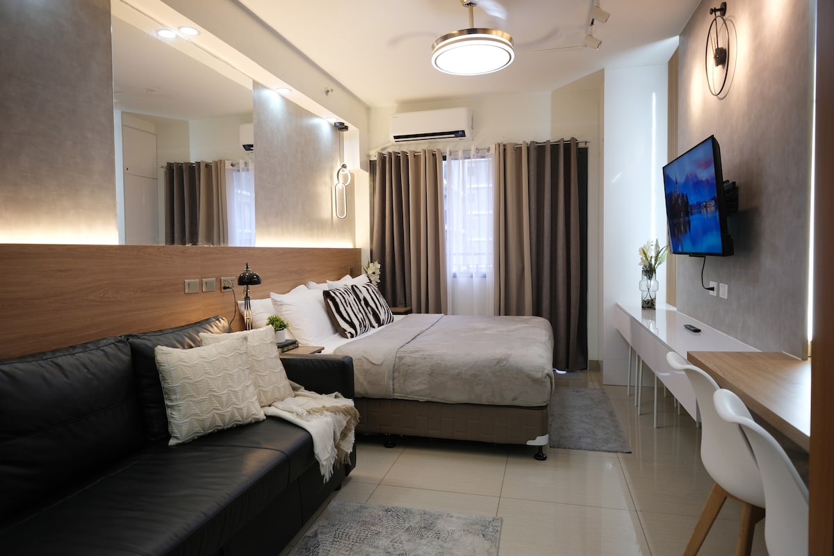 MOA Pasay Studio: Cama King + Piscina • Karaoke • Wi-Fi rápido
