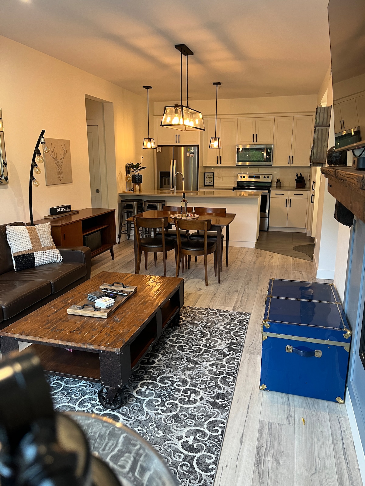 Por que ficar em um hotel quando você pode ficar em uma bela unidade de 2 quartos, 2 banheiros no piso térreo em Sun Peaks BC. Esta unidade tem vista para o pátio compartilhado com uma área de lazer para as crianças do lado de fora. A floresta de cristal fica a poucos passos da aldeia e a uma curta caminhada do teleférico. Esta casa foi totalmente renovada em 2021 e está pronta para os hóspedes (estilo moderno/chalé de meados do século). As reformas incluem: novos balcões, pisos, pintura, móveis e instalação de nova banheira de hidromassagem e todos os novos eletrodomésticos.