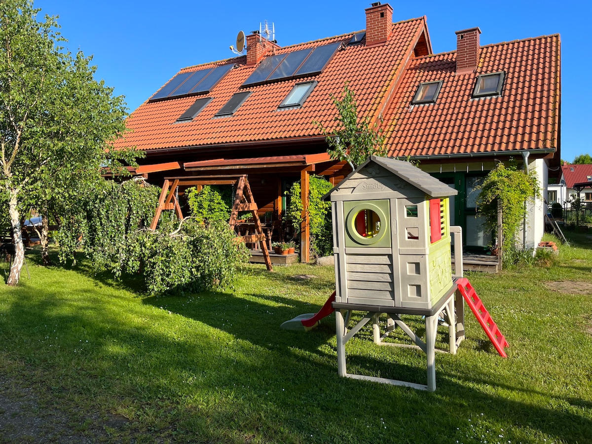 Para alugar a casa inteira a 800 metros do mar com uma área de 100 m ². Ar-condicionado , 3 quartos independentes com cama de casal, um com banheiro privativo. Sala de estar com kitchenette, terraço coberto 20m2 em um terreno de 500m2. Se você planeja ter um bom descanso em paz e tranquilidade com amigos ou familiares e ter espaço só para você, aceite nosso convite da primavera até o final de setembro :) Tanque de armazenamento de aquecimento de água 80l. Reserva direta possível. Cães aceitos por uma taxa (50zl/noite).