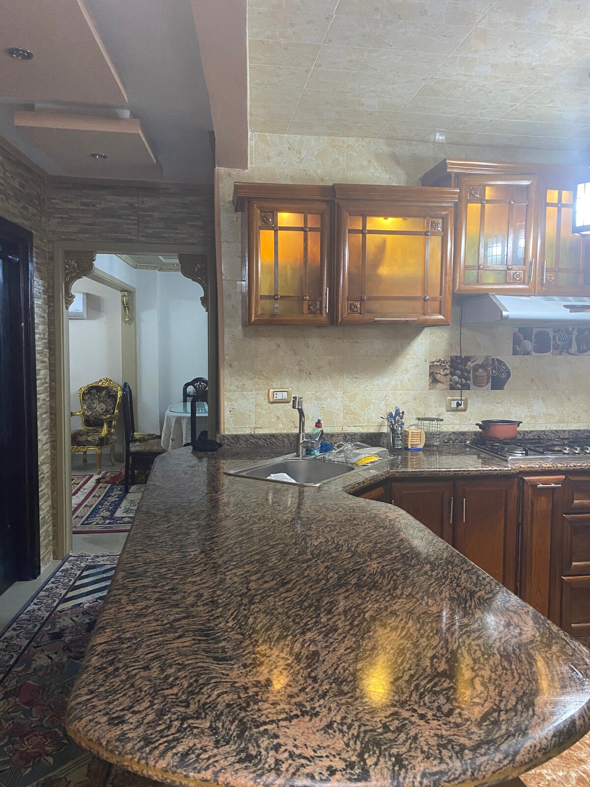 Meia-lua 🌙 Apartamento moderno de estilo europeu em Ibrahimia Totalmente mobilado com acabamentos elegantes, espelhos e grande atenção à limpeza. Cozinha totalmente equipada com eletrodomésticos modernos Wi-Fi de alta velocidade e recetor de TV Acesso por porta inteligente (Ring) e elevador Inspirado nos padrões europeus, combinando conforto e estilo Ideal para famílias, hóspedes do Golfo e estadias de curta e longa duração.