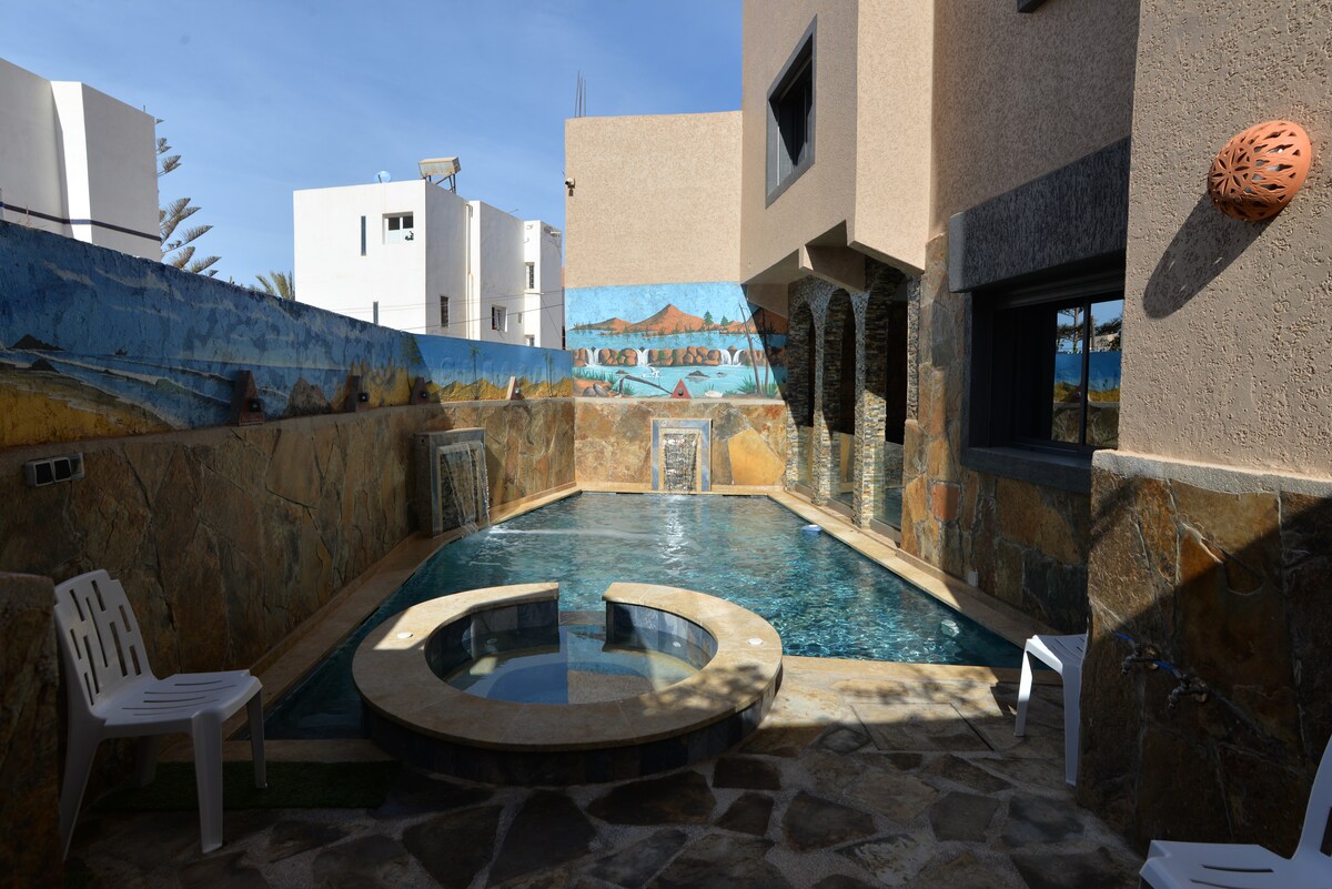 Linda moradia com vista para o mar com piscina em estilo moderno com um toque artesanal berbere. A moradia tem 3 quartos com casas de banho individuais. Os quartos podem acomodar 1 a 3 pessoas. A casa inteira é acessível e privada. uma empregada fornecida durante a sua estadia