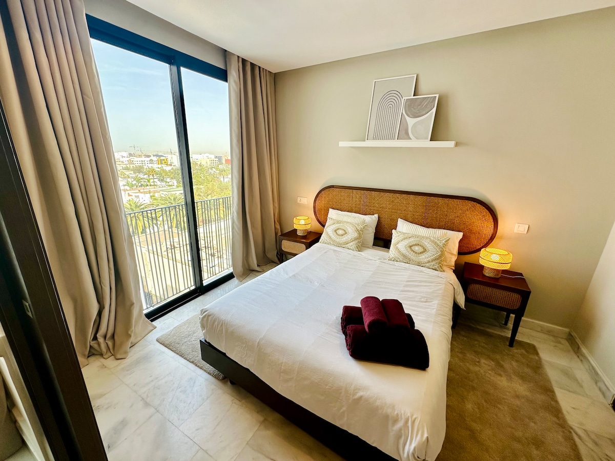Bem-vindo ao nosso apartamento elegante e moderno em Casablanca! Localizado no coração da cidade, no bairro Oasis. Ao chegar, você será seduzido por uma sala de estar elegante, um quarto aconchegante e um banheiro luxuoso com chuveiro italiano. Aproveite também uma vaga de estacionamento e acesso a uma academia no prédio. Reserve agora para uma escapada urbana inesquecível!