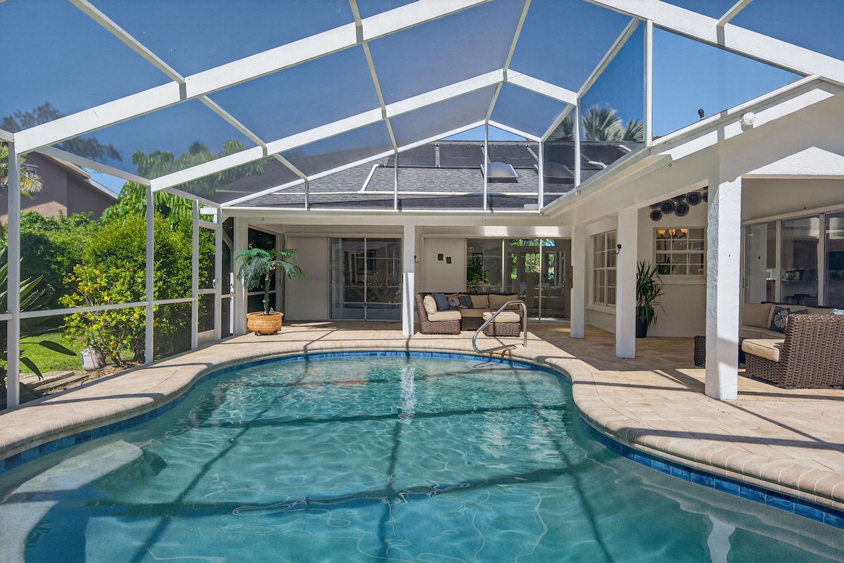 HEATED POOL. NONTOXIC + ECO FRIENDLY. Relax with the whole family or bring that group chat trip to life at this peaceful retreat in the heart of Sarasota. Boasting a spacious and nature-inspired design, this home is a short drive to several world class beaches, the downtown Sarasota arts district, 5 star dining, shopping and more. The home is also located within walking distance of a park complete with playground, public pool, tennis + basketball courts, workout area and walking trails.