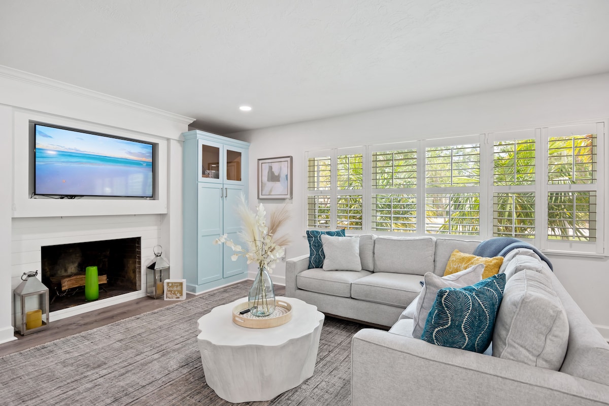 Desfrute desta casa de piscina única luminosa e recentemente renovada numa rua com casas à beira-mar com 4 camas e 3 casas de banho, opções de área de escritório, recanto de leitura de loft, eletrodomésticos Bosch, claraboias de quarto, luminárias artísticas e totalmente vedada com piscina aquecida. Central e a minutos de Siesta Key, St. Armand's Circle/Lido Key, centro da cidade. Caminhe até ao Museu de Artes de Sarasota, mercearia, Southside e restaurantes e lojas do centro da cidade, Selby Botanical Gardens, Bayfront Park e Marina Jack. VR24-00157